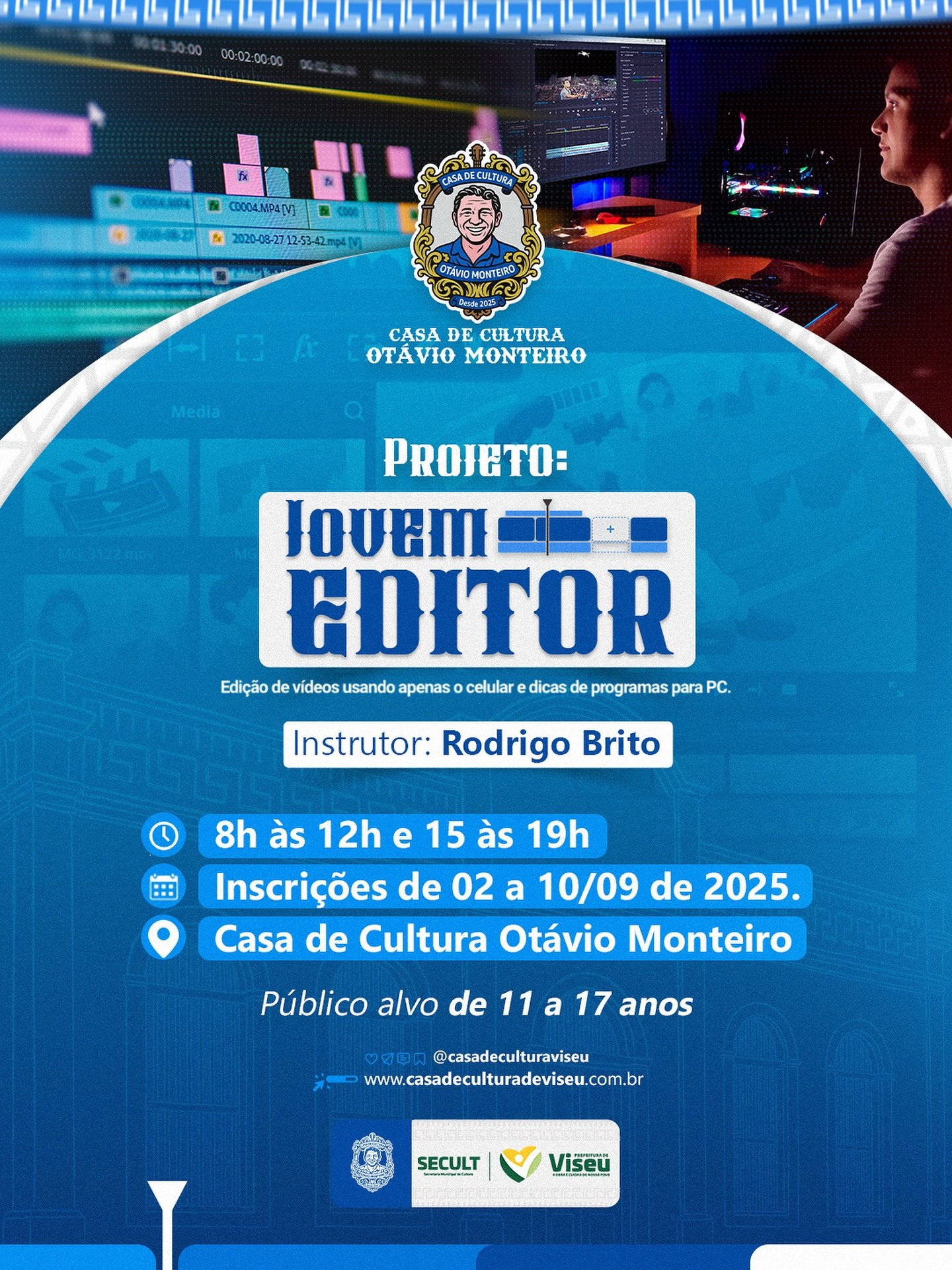 A Casa de Cultura Otávio Monteiro já está de portas abertas, pronta para receber você, sua família e seus amigos. Aqui é o lugar para viver a nossa história, arte e cultura de perto!